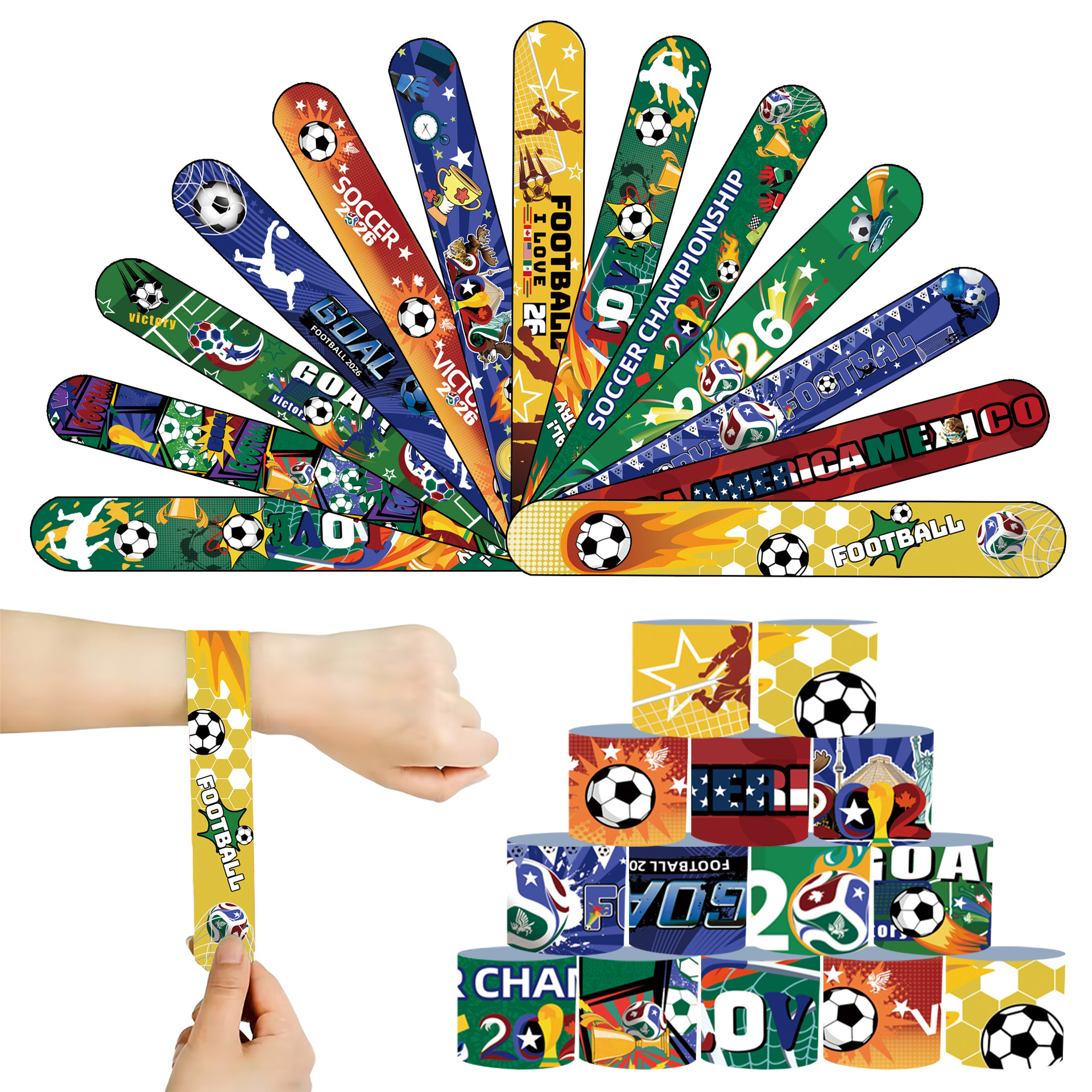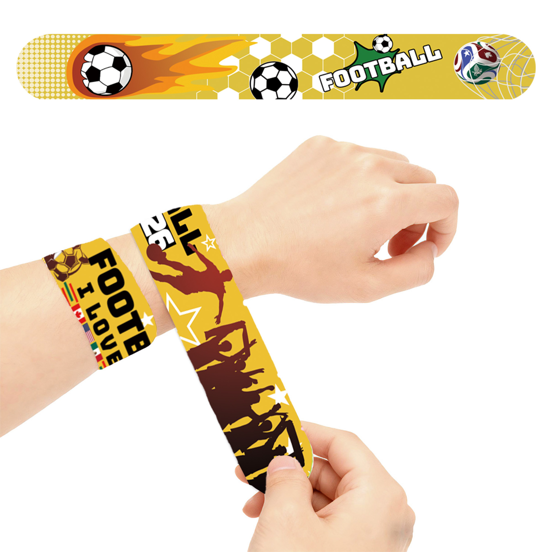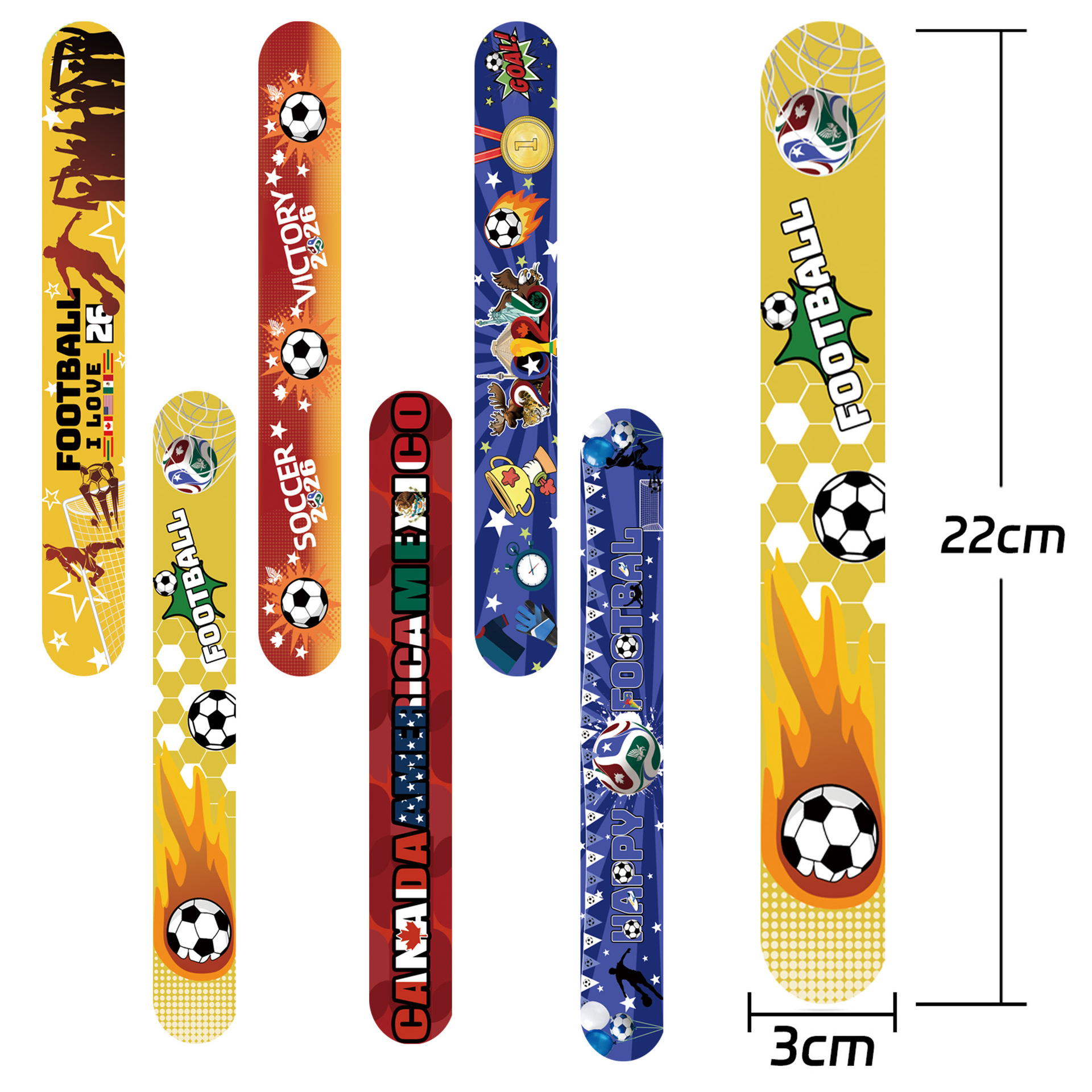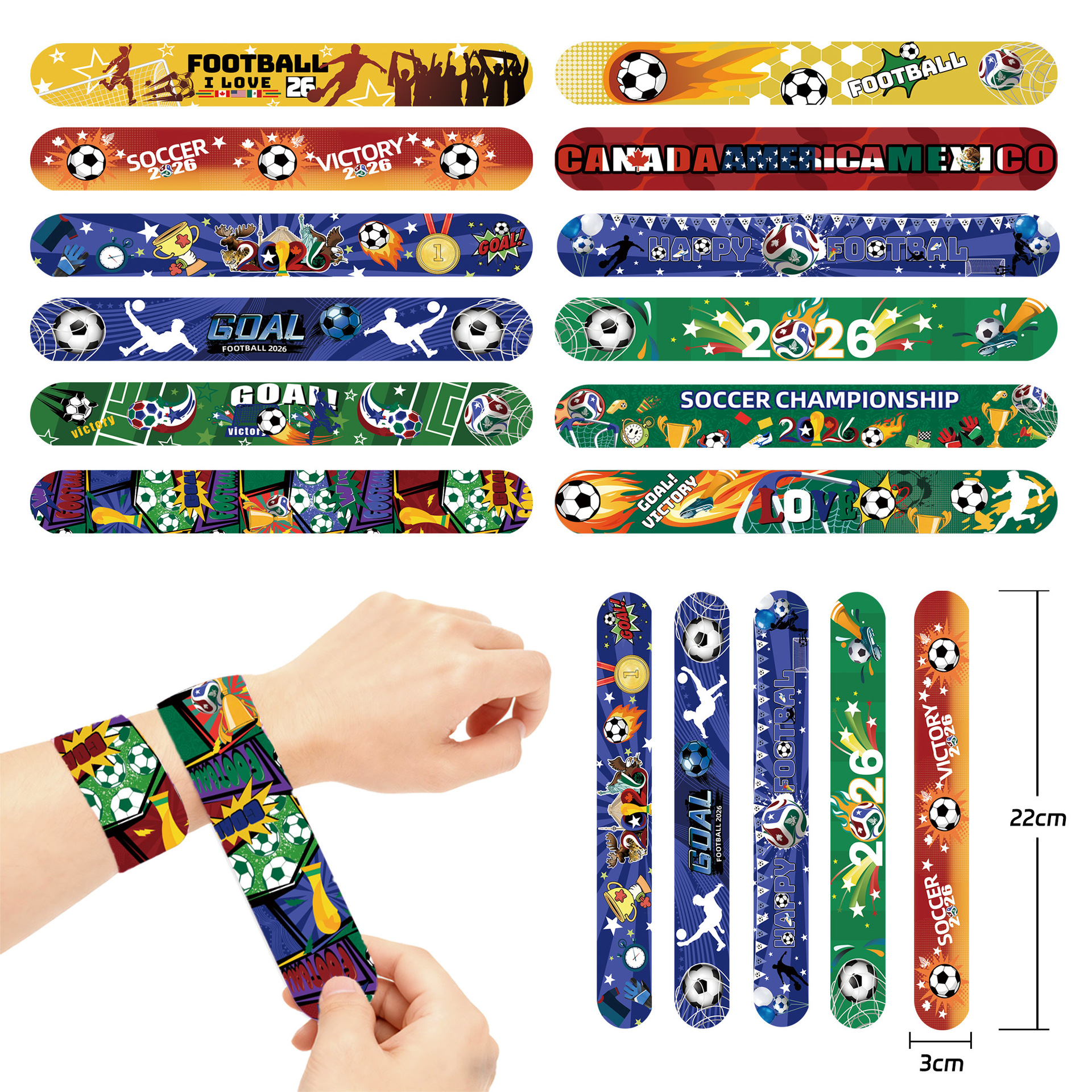 World Cup themed design, soft and skin-friendly, fun to snap on. Classic soccer pattern, official-style wristband, stylish and versatile. Sent in random styles.