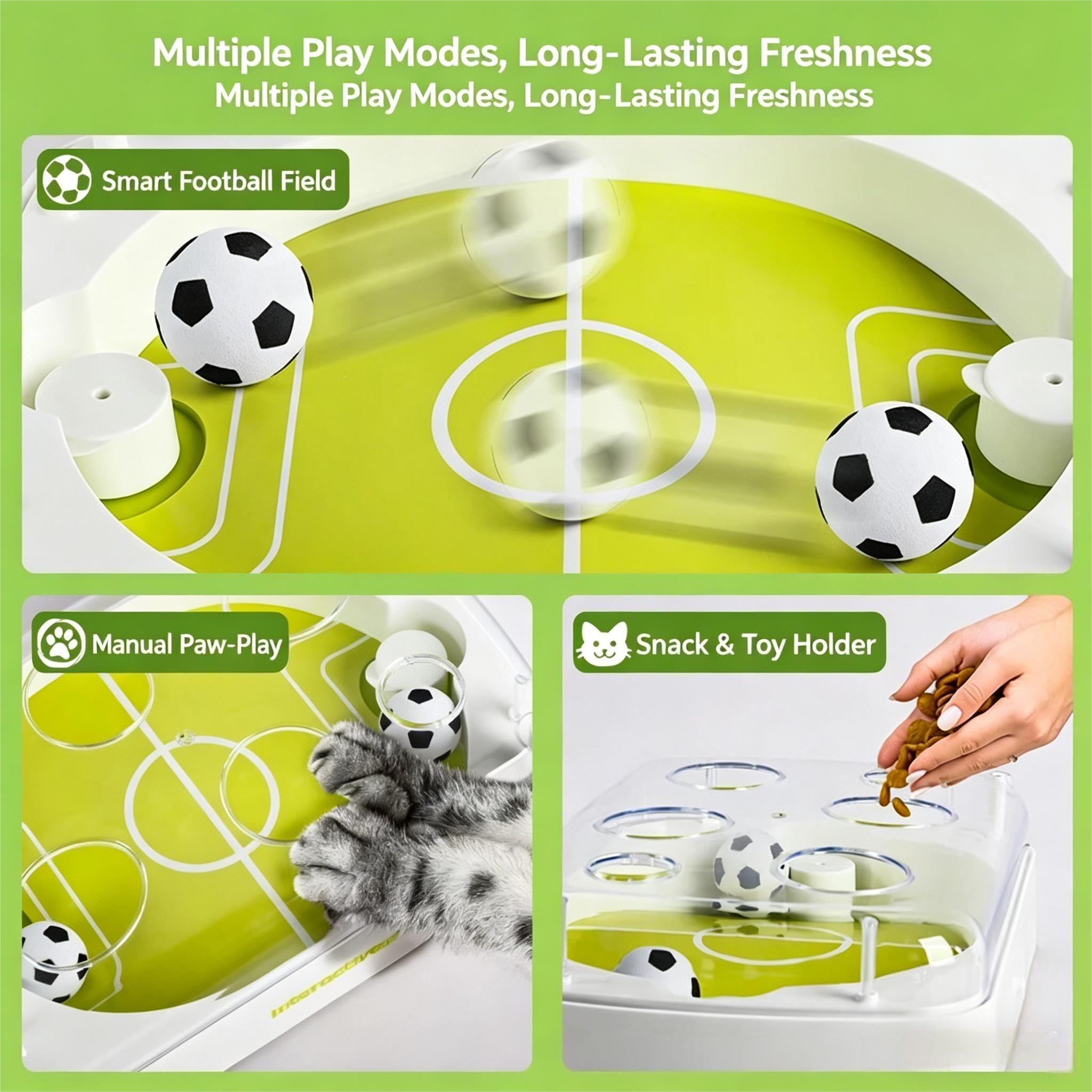 & Free ShippingThis cat soccer toy features intelligent sensing and automatic activation, multiple gameplay designs, and a built-in dazzling atmosphere that easily stimulates cats’ hunting instincts, allowing pets to interact happily.
