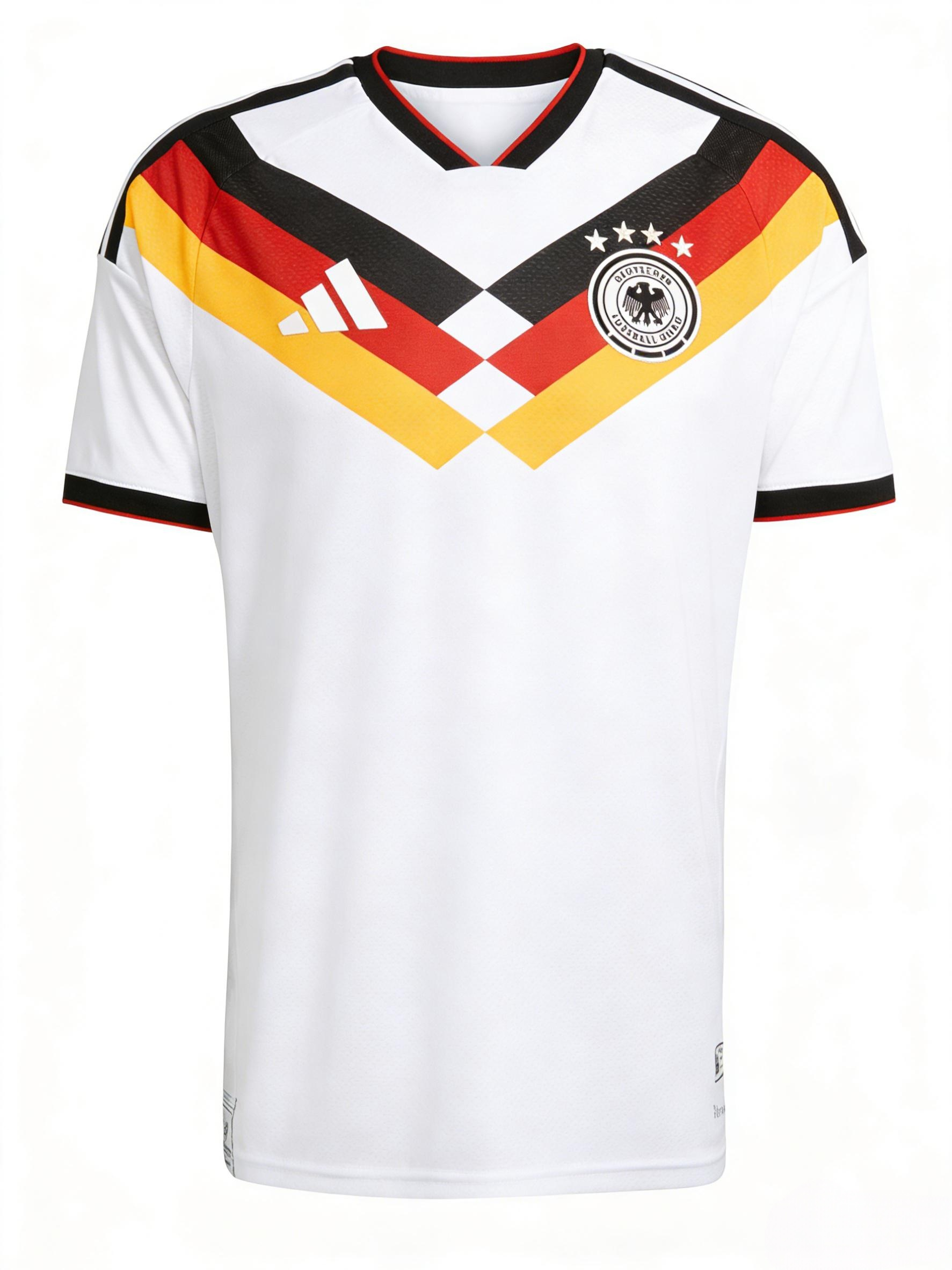 & Free ShippingThis 2026 World Cup German national team home jersey is based on the classic yellow, red, black and white color scheme, with geometric stripe design echoing the national flag elements, simple and atmospheric. The German team emblem and Adidas logo are printed on the chest, combining sports performance with retro texture, showcasing the tough style of the German tank.